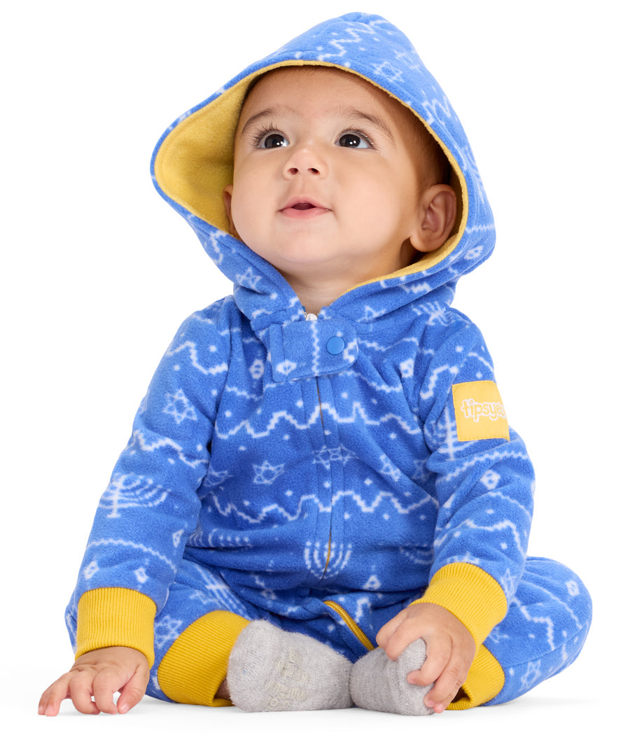 Celebrate Hanukkah in Style Introduce your little one to the joy of Hanukkah with the Baby Boy's Blue Hanukkah Jumpsuit....