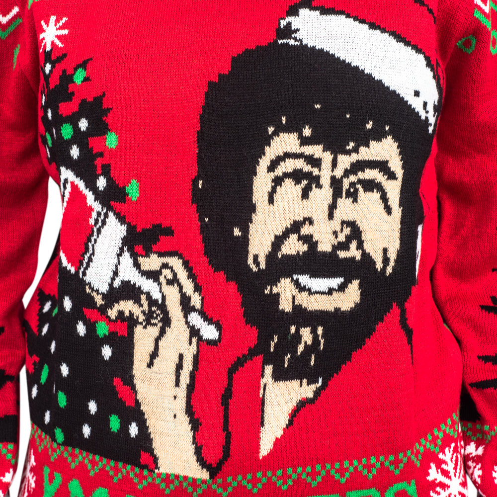 Célébrez les fêtes ! Préparez-vous à célébrer les fêtes avec le pull Bob Ross « Petits Sapins de Noël Joyeux », une...