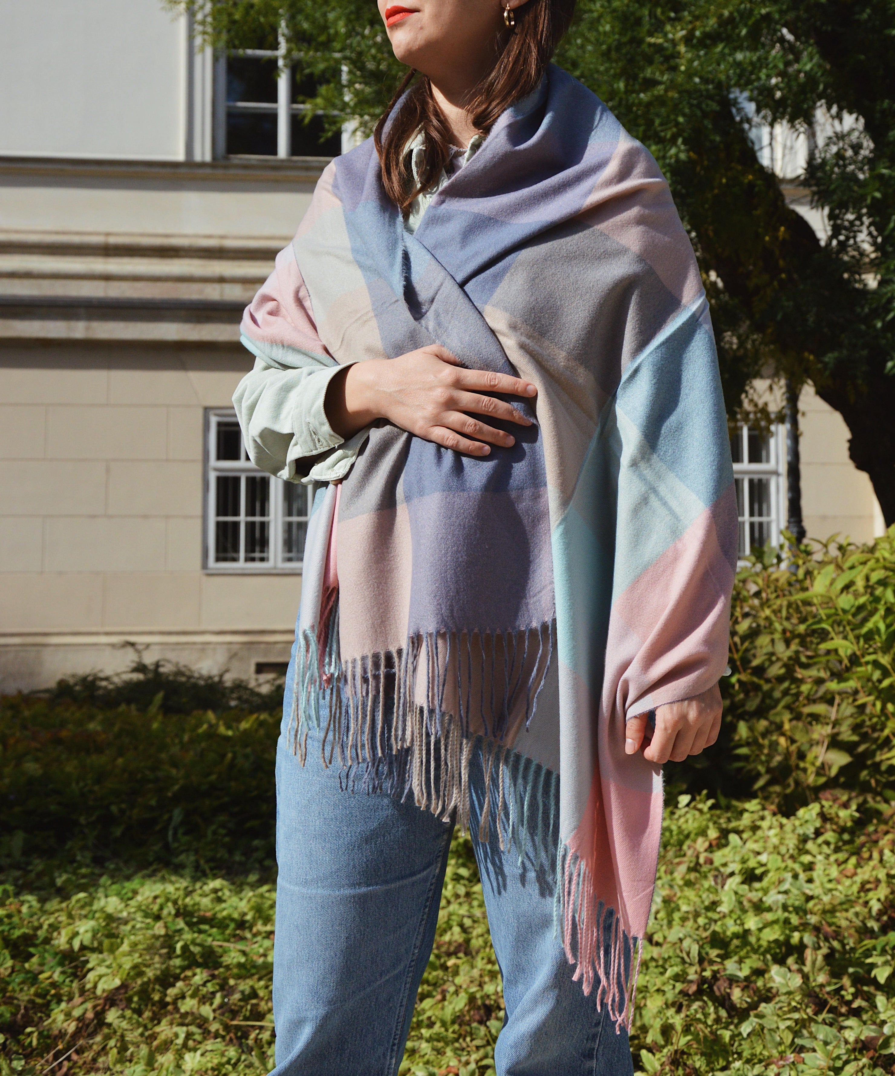 Écharpe à carreaux | Menthe - Rose | Accessoires pour tous
