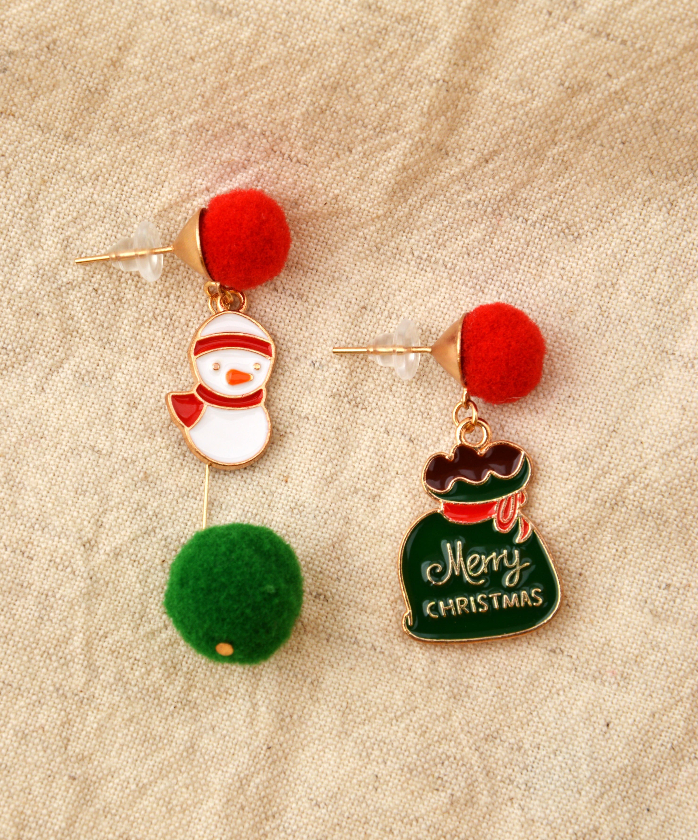 Boucles d'oreilles de Noël - Bonhomme de neige avec sac