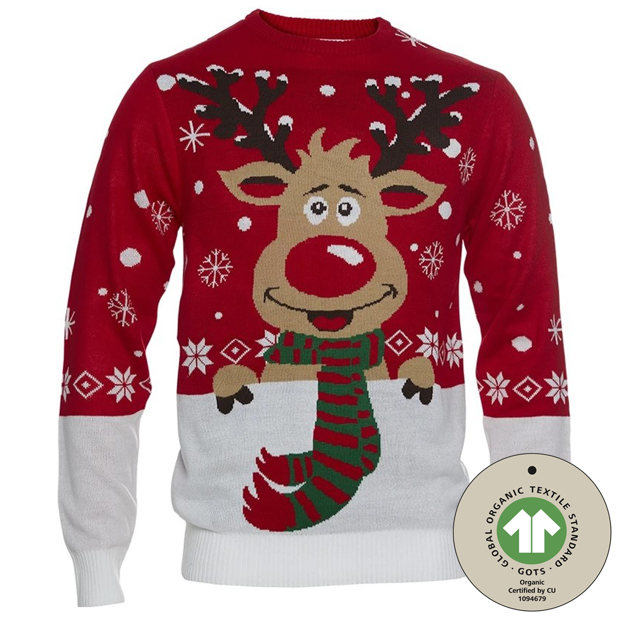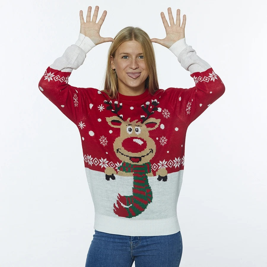 Rudolph avec son pull de Noël à écharpe