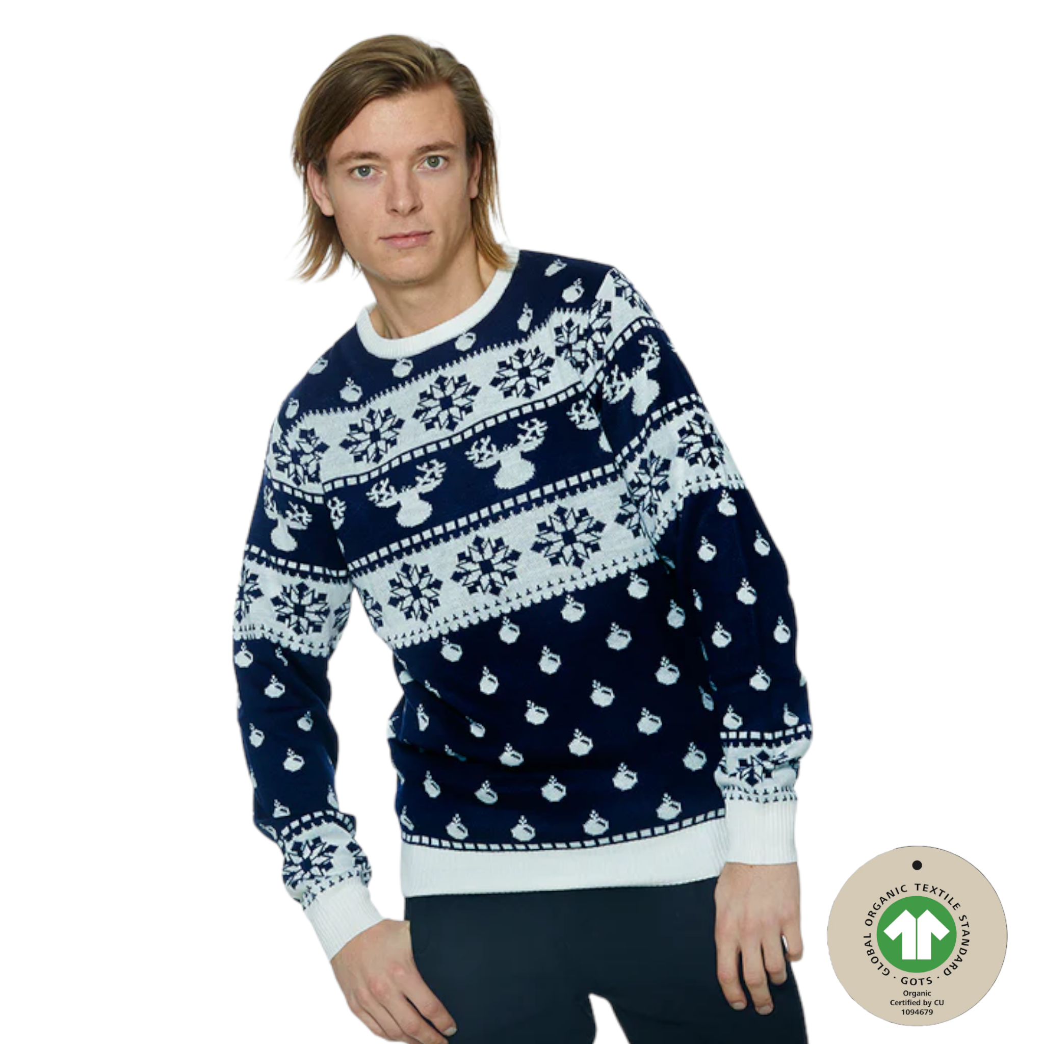 Élégance intemporelle pour les fêtes Découvrez le pull de Noël bleu classique pour homme, un parfait mélange de style et...