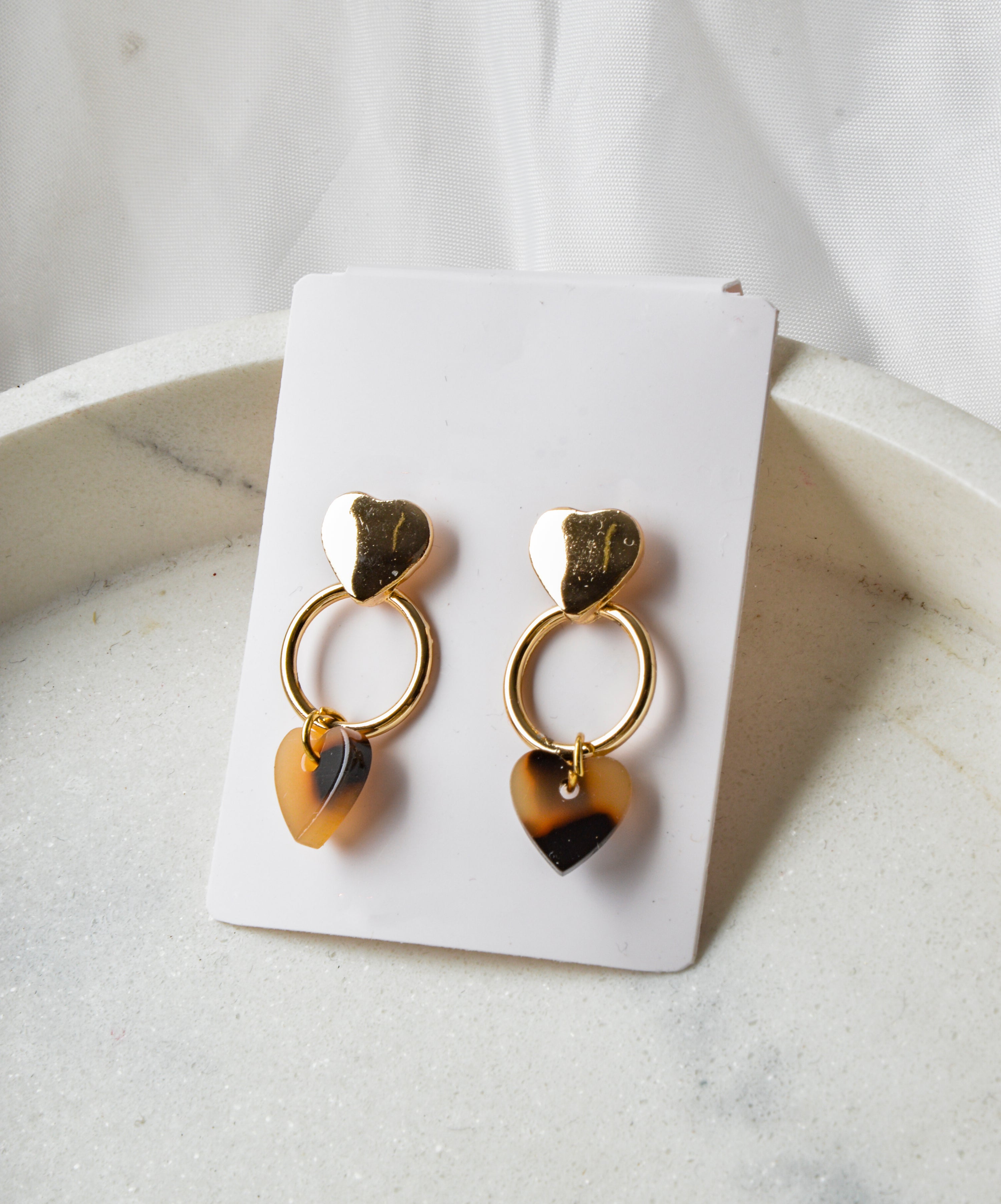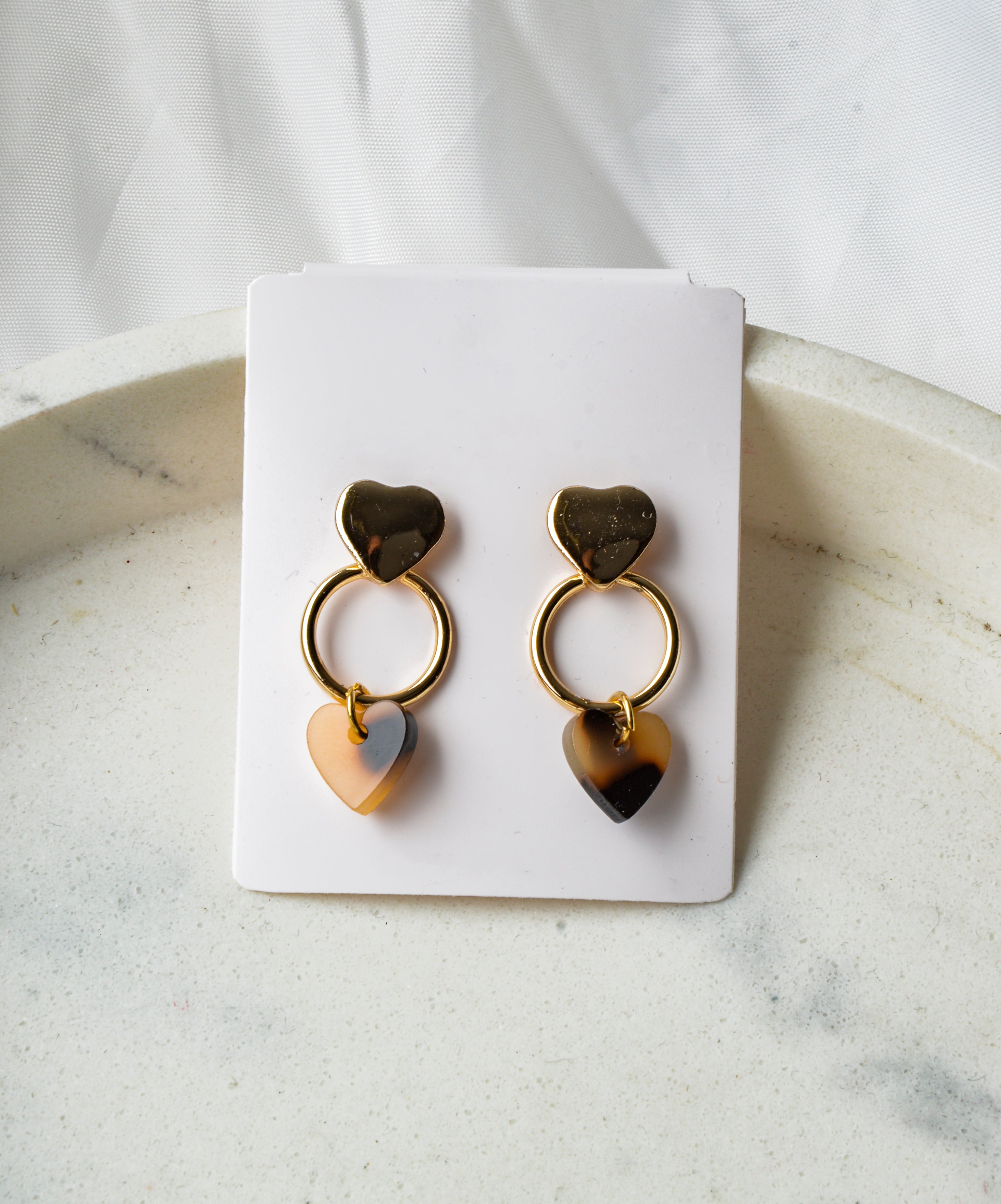 Boucles d'oreilles - Marbre | Motif cœur marron