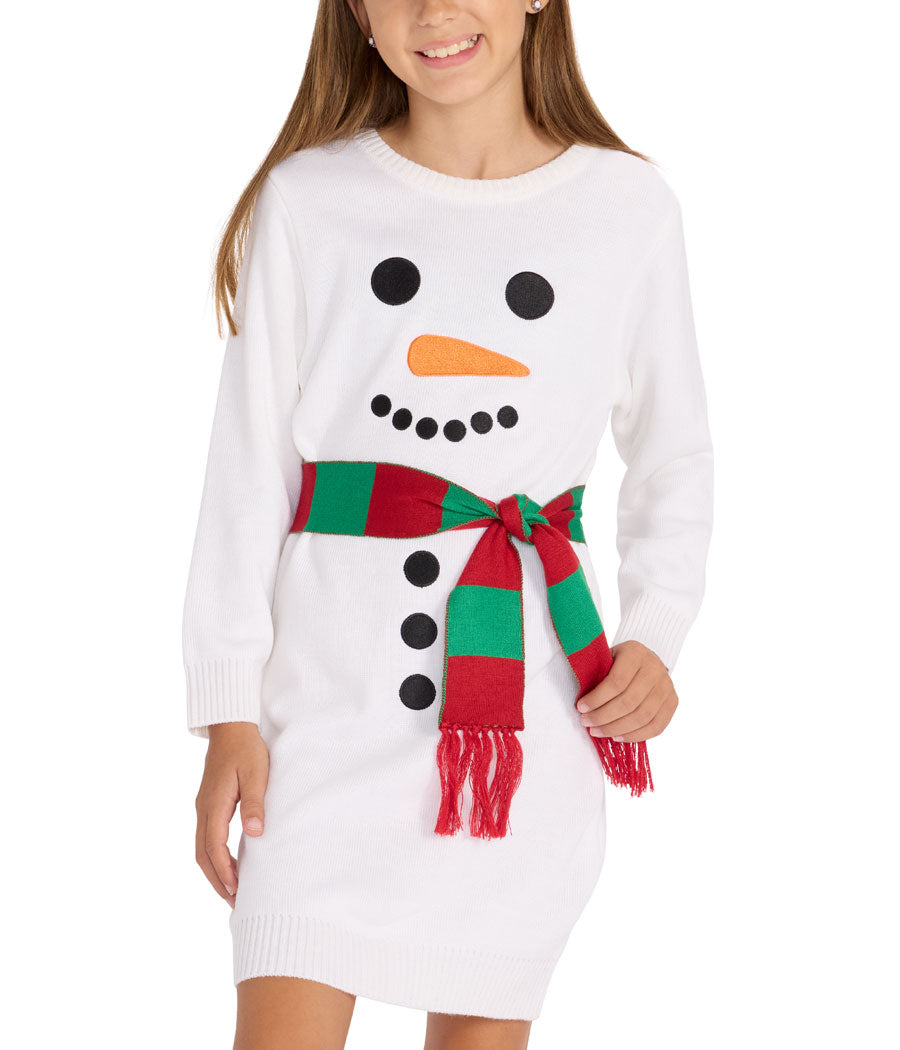 Girl's Snowman Scarf Sweater Dress