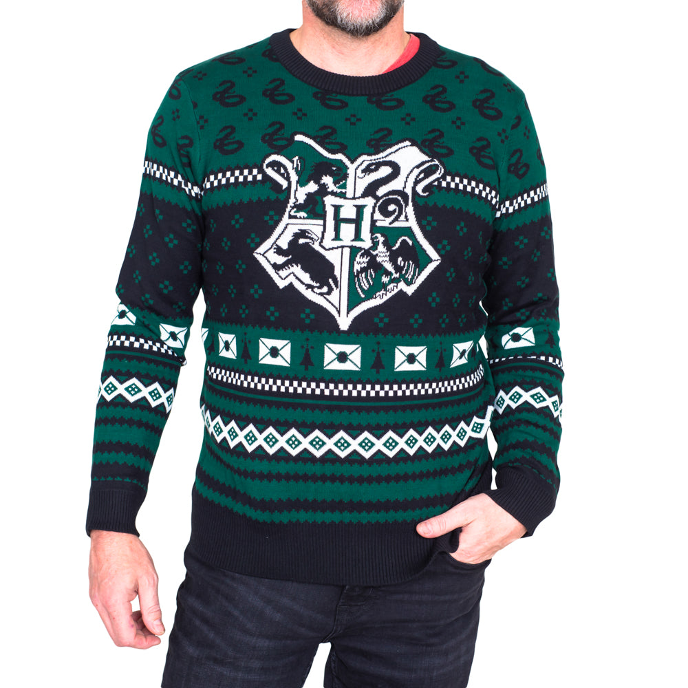 Pull moche à motifs de Noël Harry Potter Serpentard