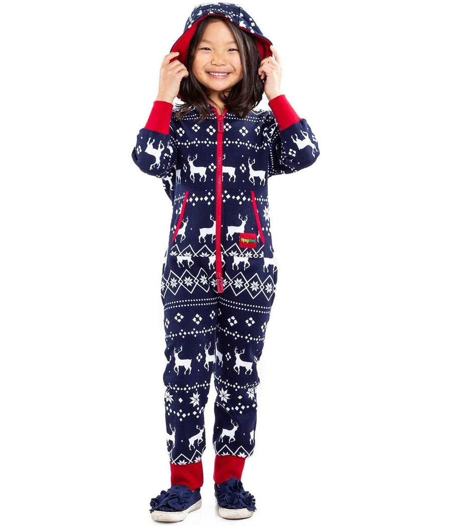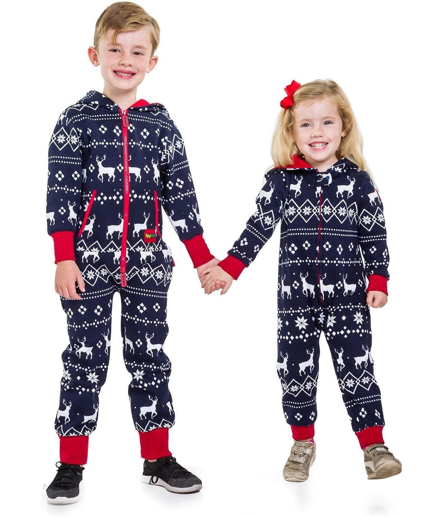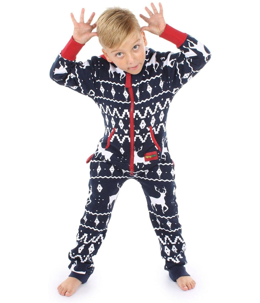 Playful Winter Fun Let your kids enjoy the snowy weather in style with our Boy's/Girl's Blue Fair Isle Reindeer Jumpsuit....