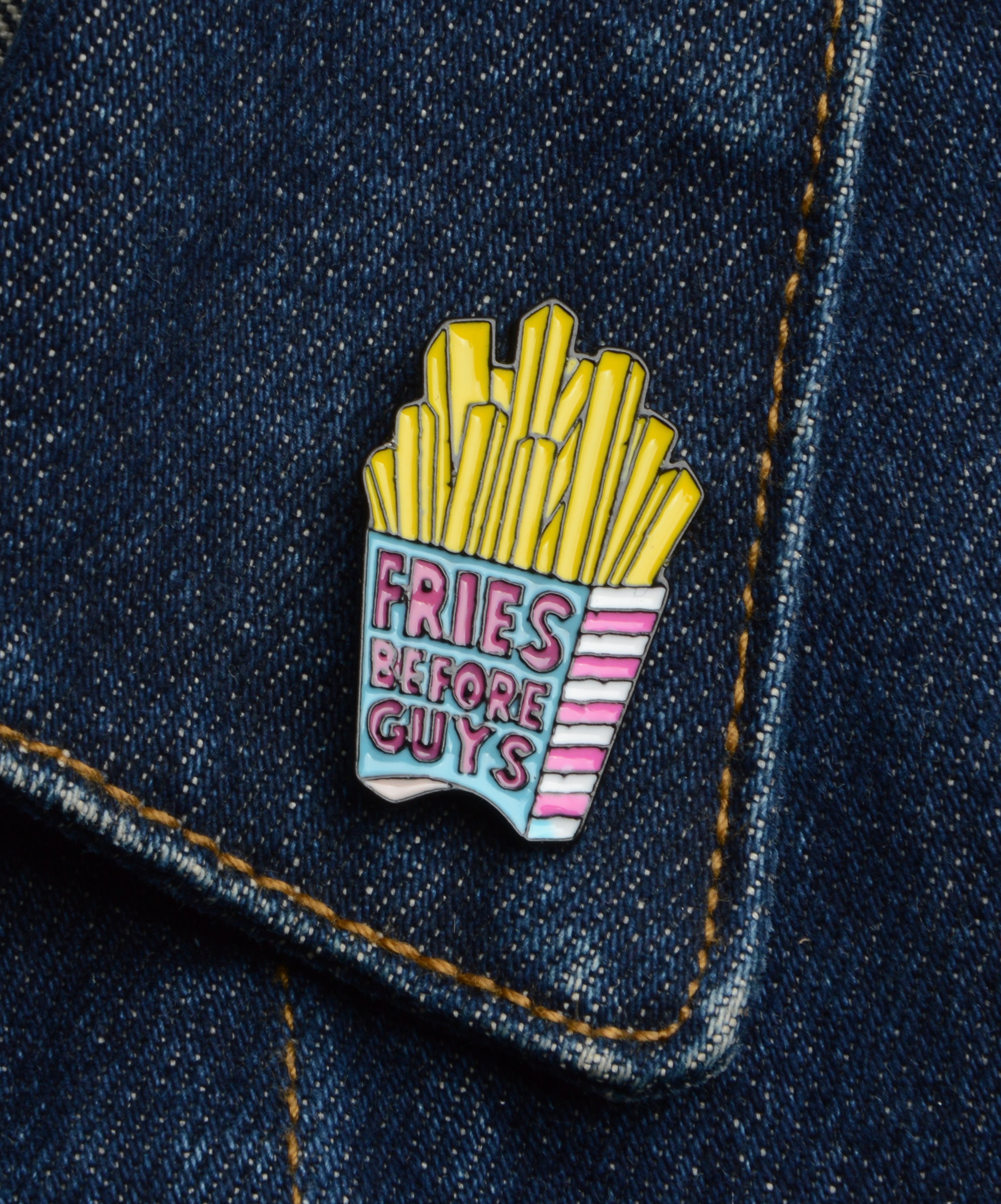 Pièce originale et amusante Affichez votre passion pour les frites avec notre pin's « Frites avant les mecs », un accessoire amusant...