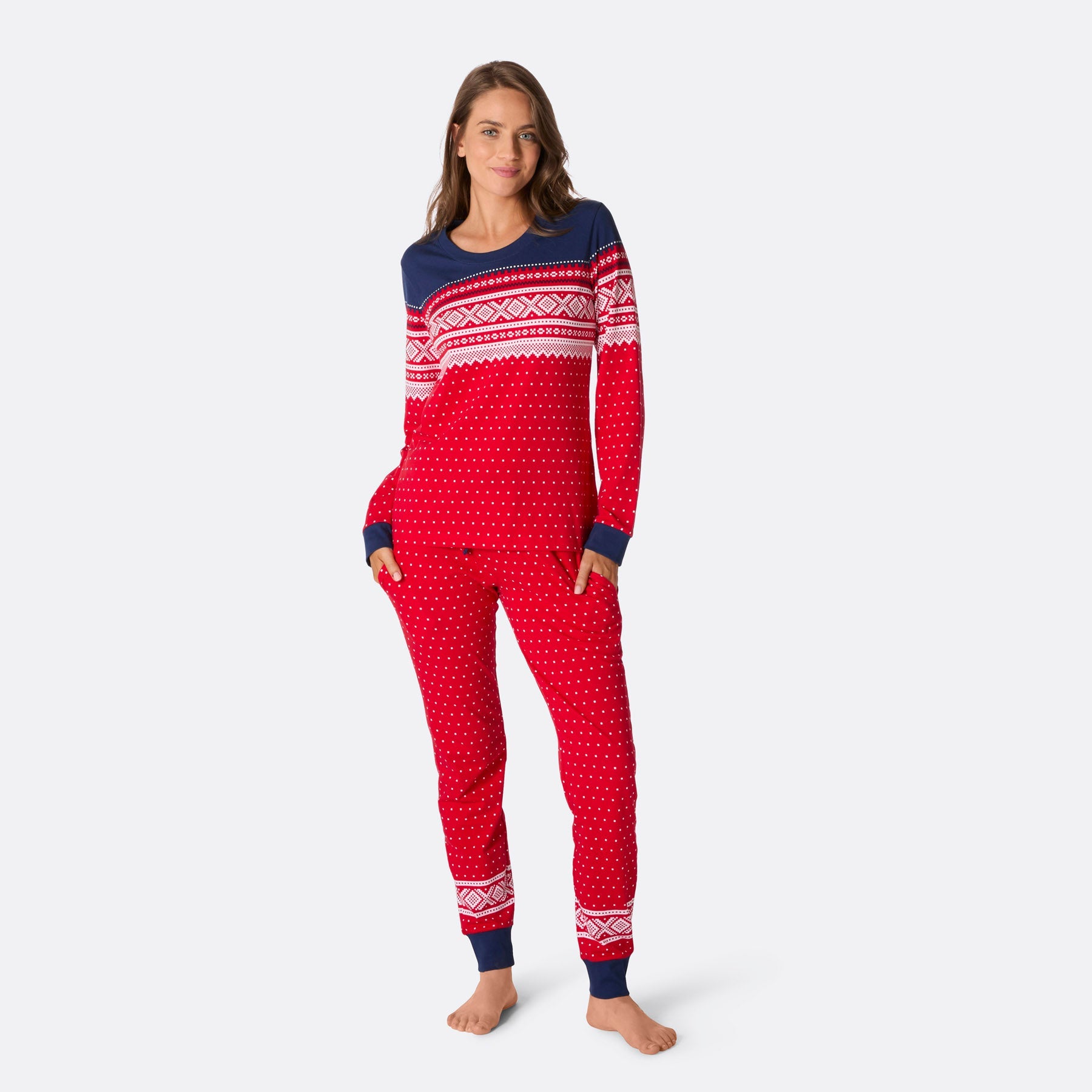 Pyjama rouge Marius pour femme - Style Noël et toute l'année