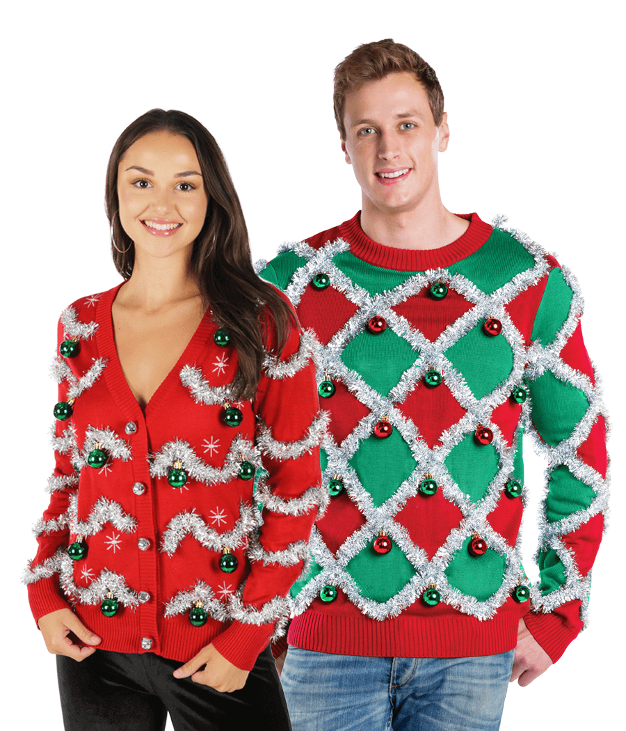 Matching Tacky Tinsel Couples Ugly Christmas Sweater