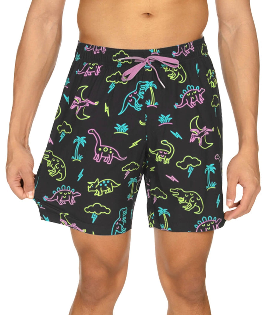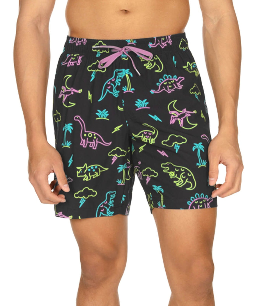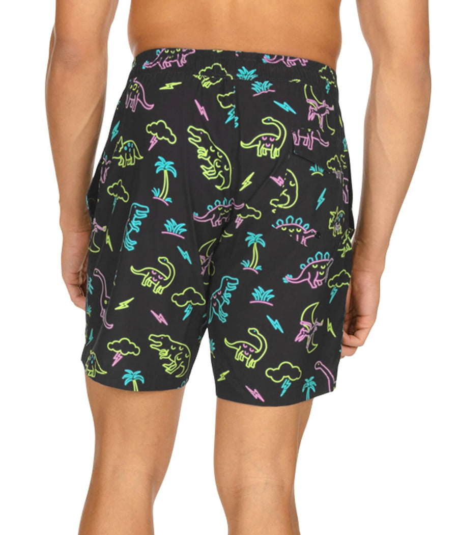 Neon Dinosaur Stretch Swim Trunks - 7.5" Inseam