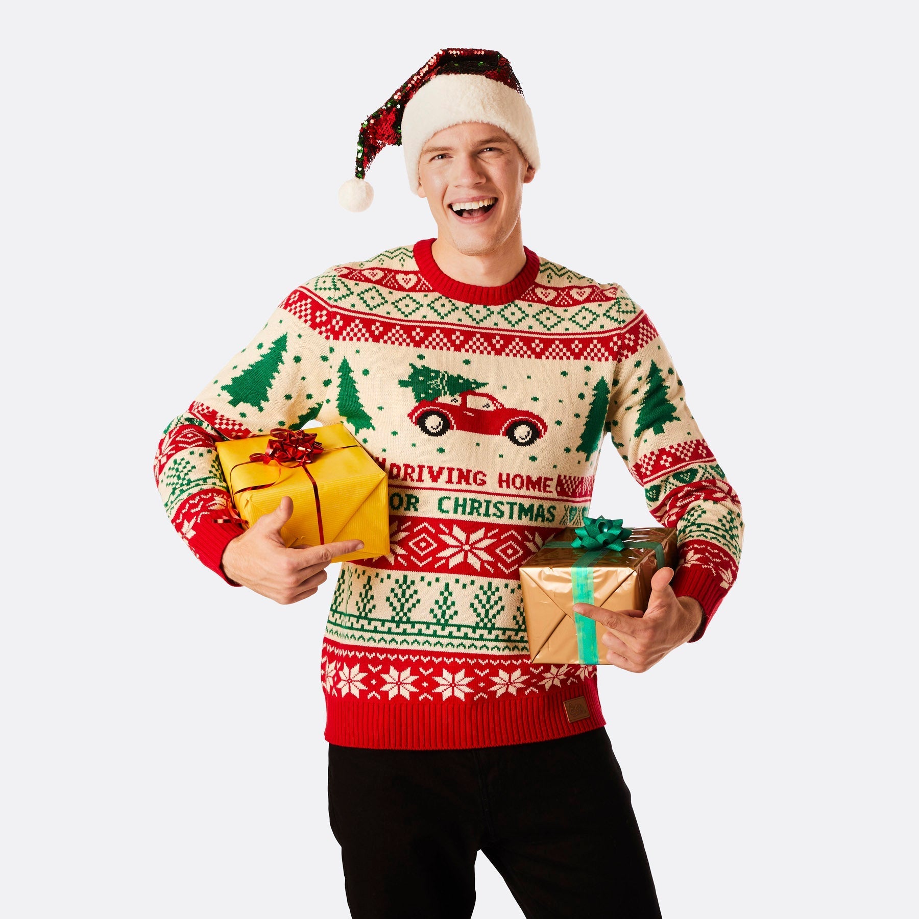 Pull de Noël pour homme « Rentrer à la maison en voiture »