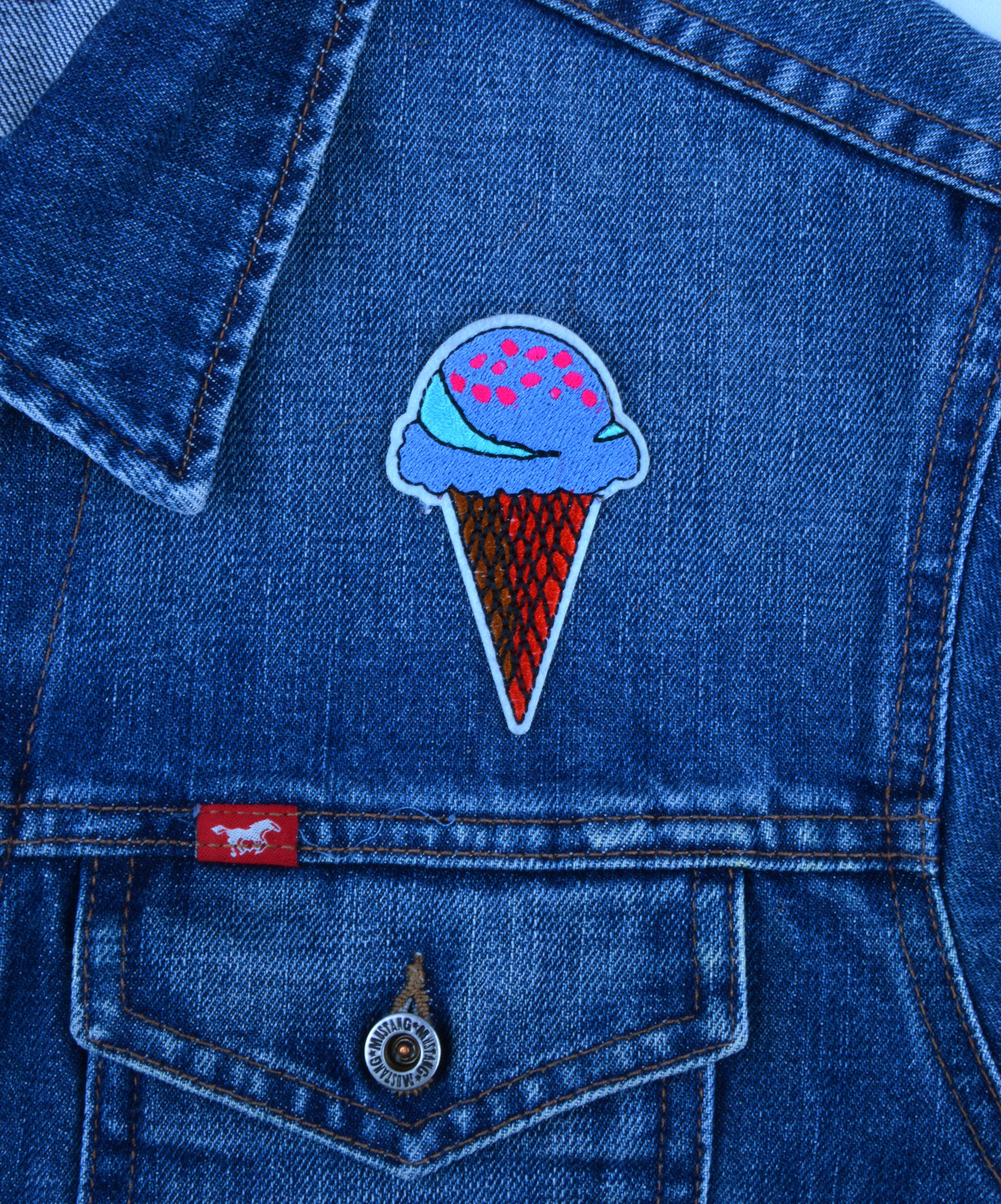 Ajoutez une touche de fantaisie à vos tenues Égayez votre garde-robe avec l'écusson « Crème glacée aux myrtilles », idéal pour ajouter...
