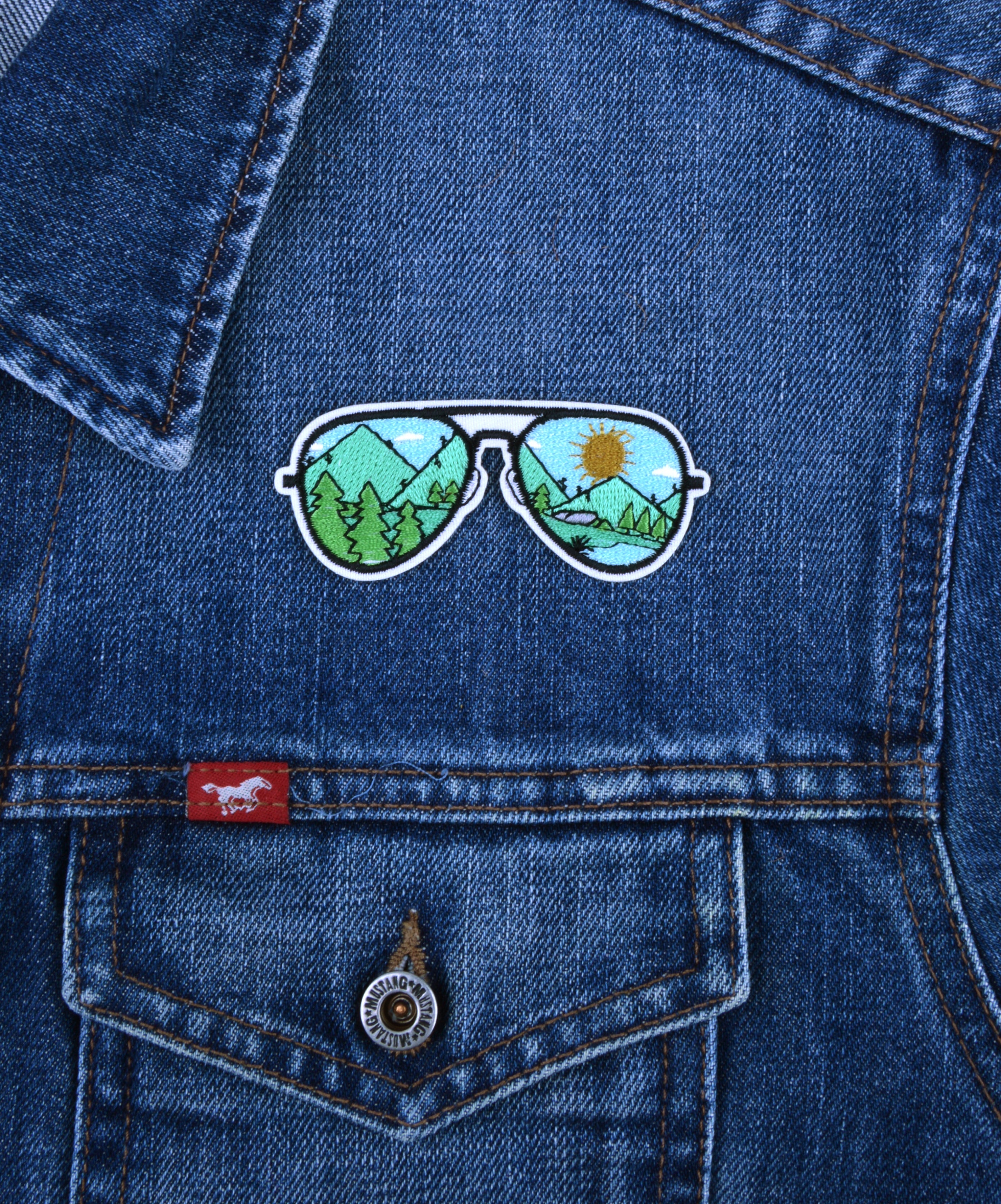 Exprimez votre style unique Notre écusson thermocollant « Lunettes de paysage » est idéal pour afficher votre passion de l'aventure....