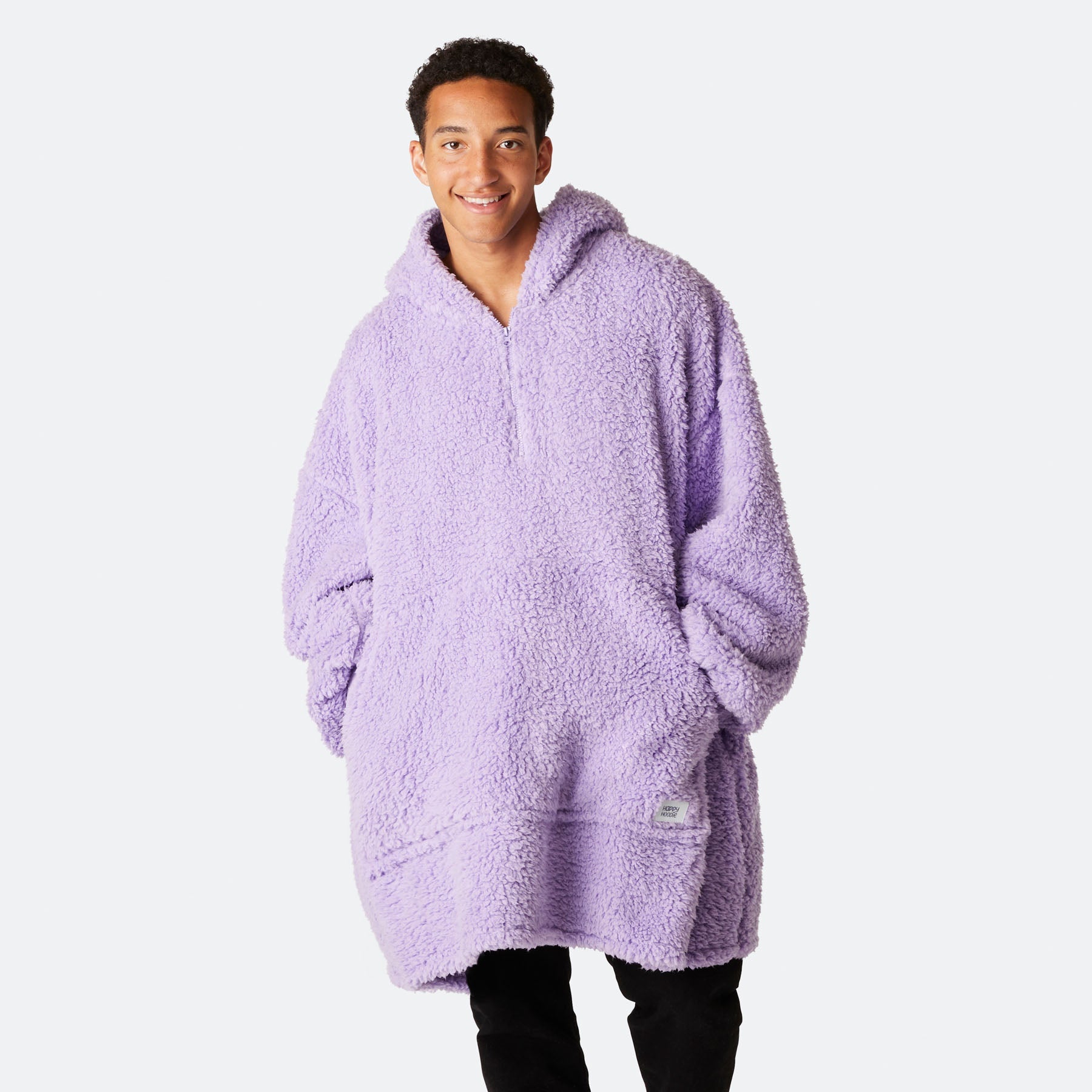 Sweat à capuche HappyHoodie en sherpa violet