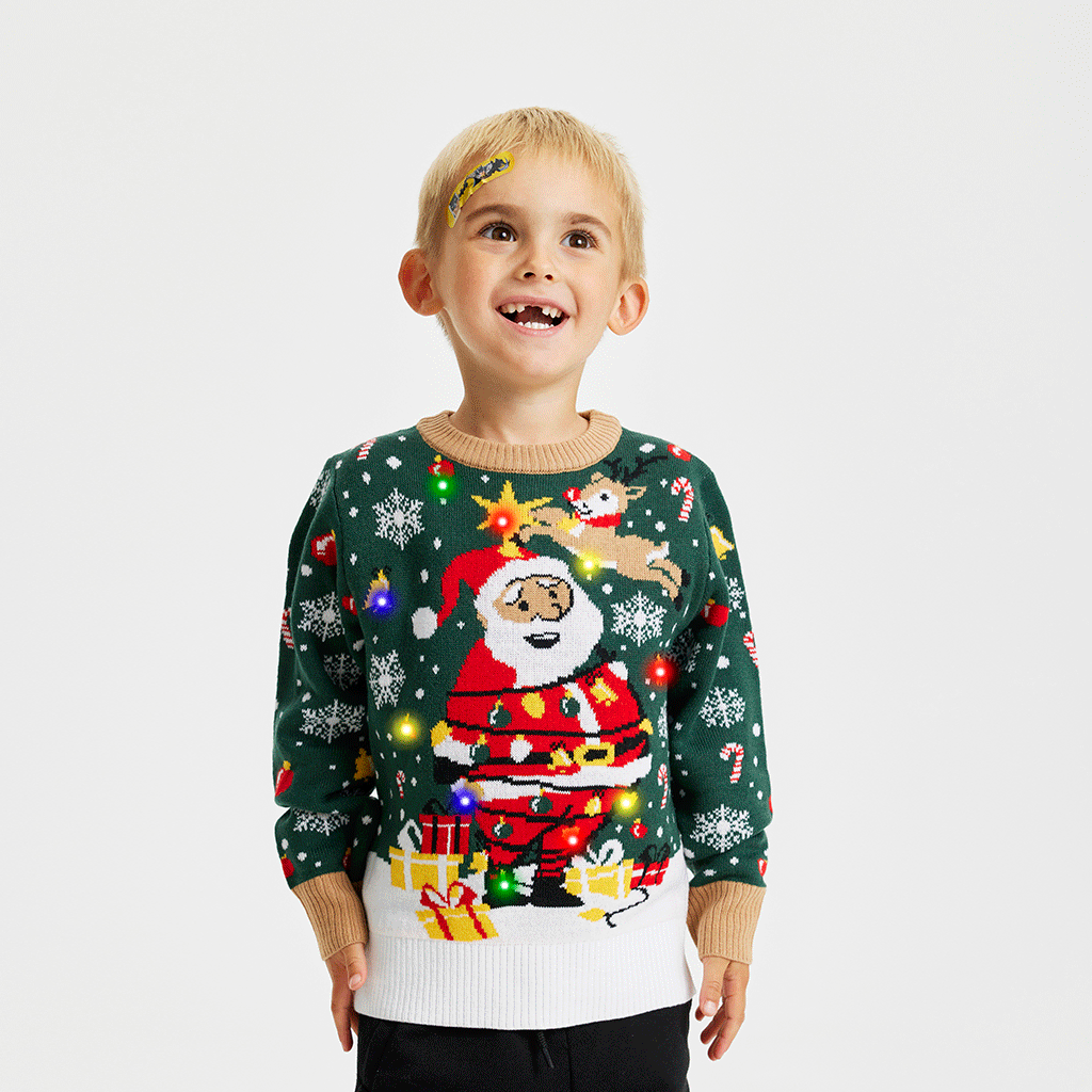 Illuminez les fêtes Préparez-vous à vivre des moments festifs inoubliables avec notre pull de Noël LED Père Noël pour enfants....