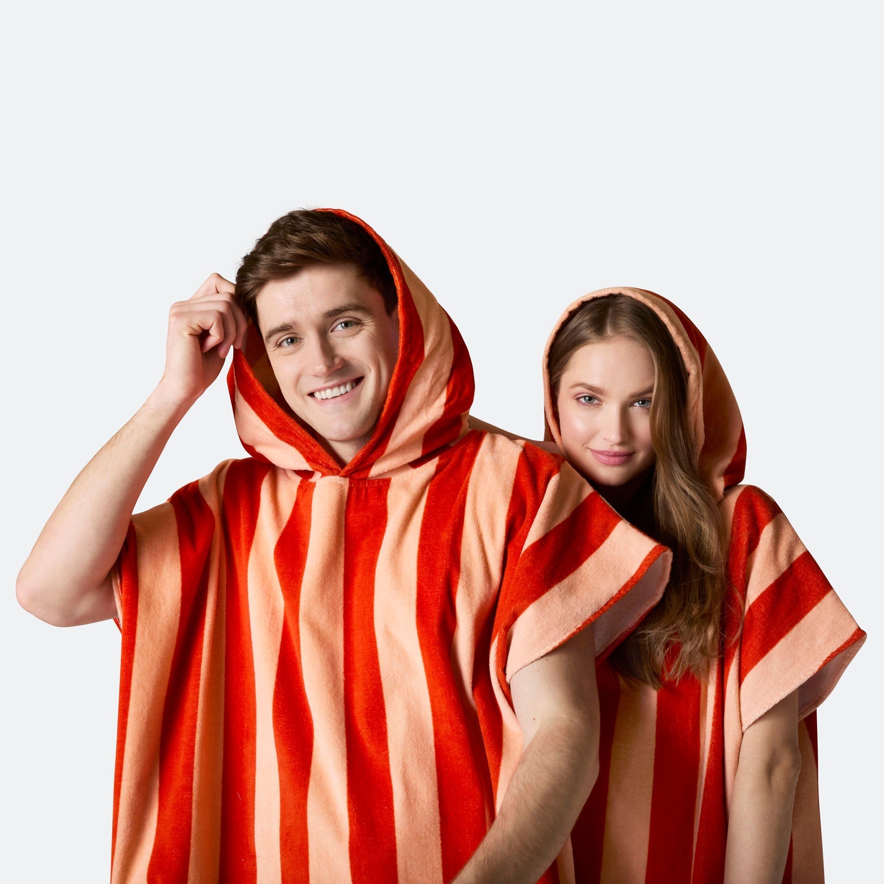 Poncho de serviette rouge rayé