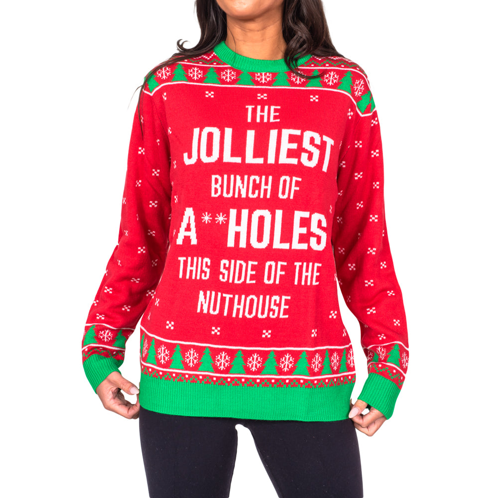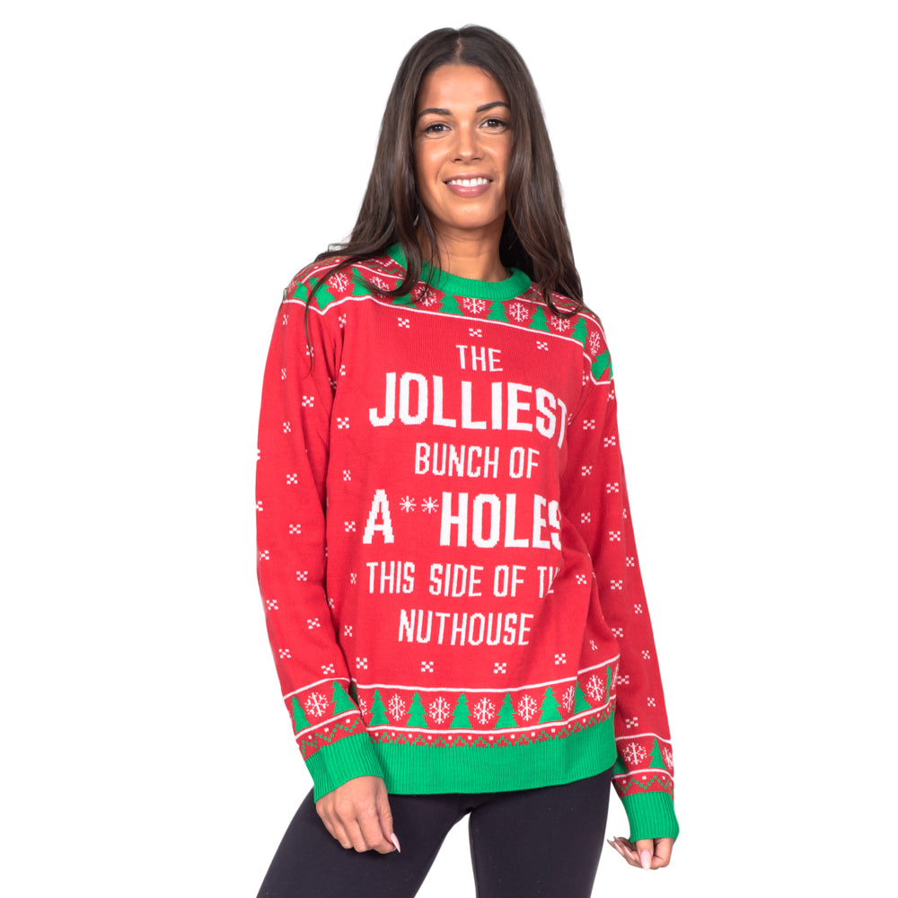 Joie nostalgique des fêtes Célébrez la magie de Noël avec le pull de Noël rouge « The Jolliest Bunch », conçu pour...
