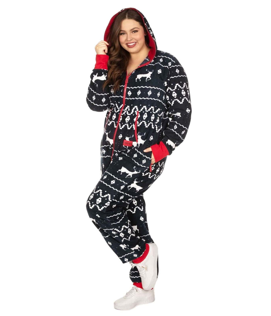 Women's Blue Reindeer Plus Size Jumpsuit