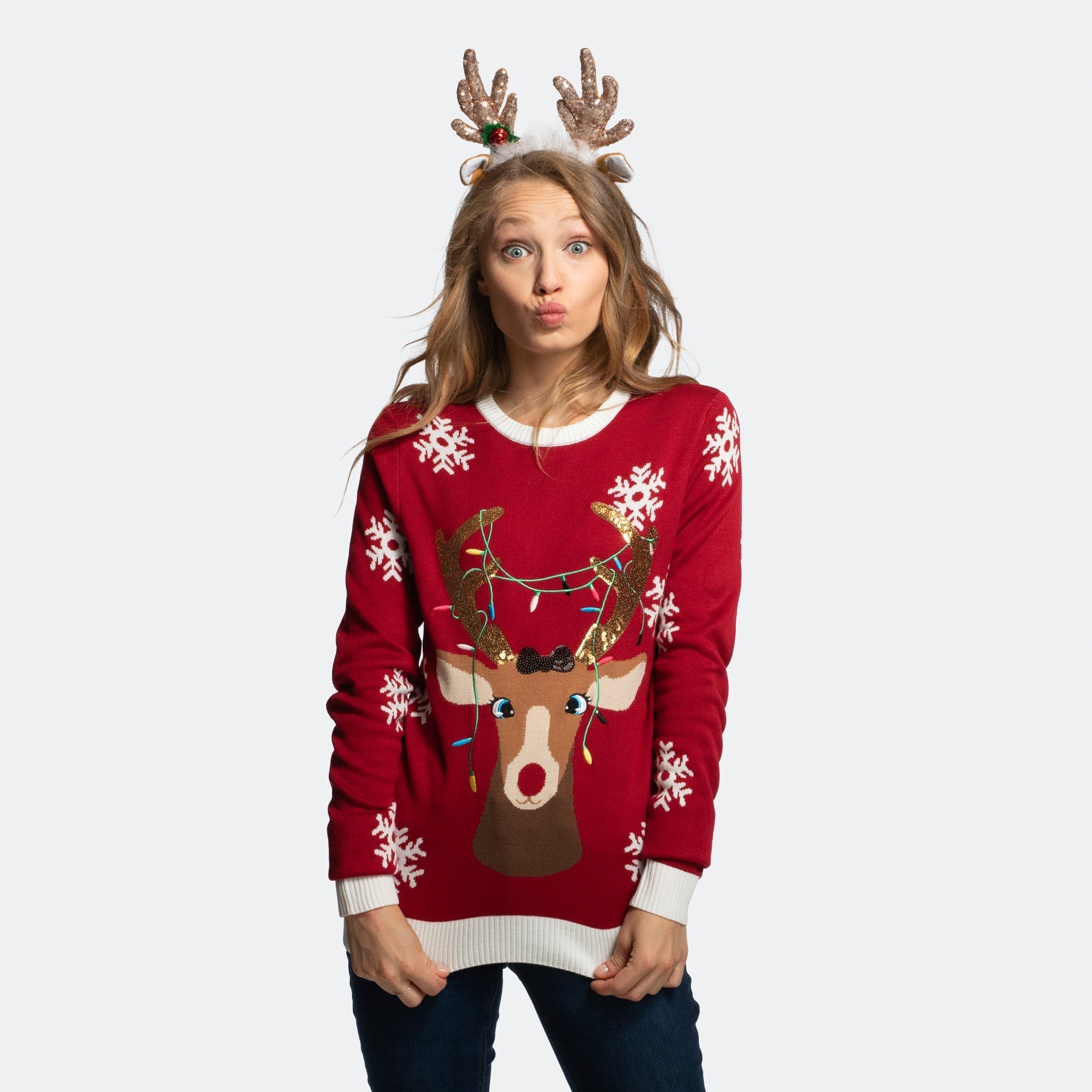 Pull de Noël mignon à motif renne pour femme