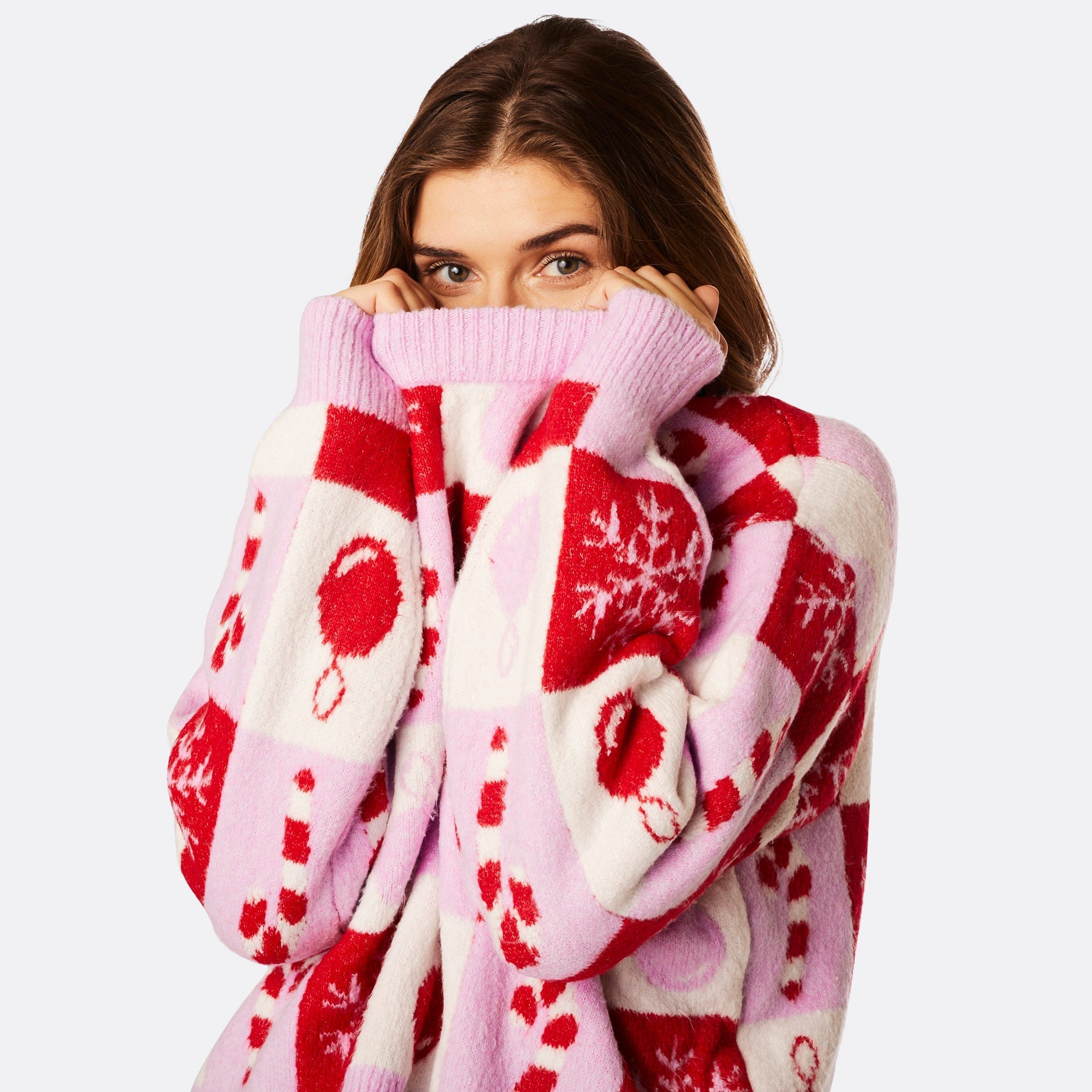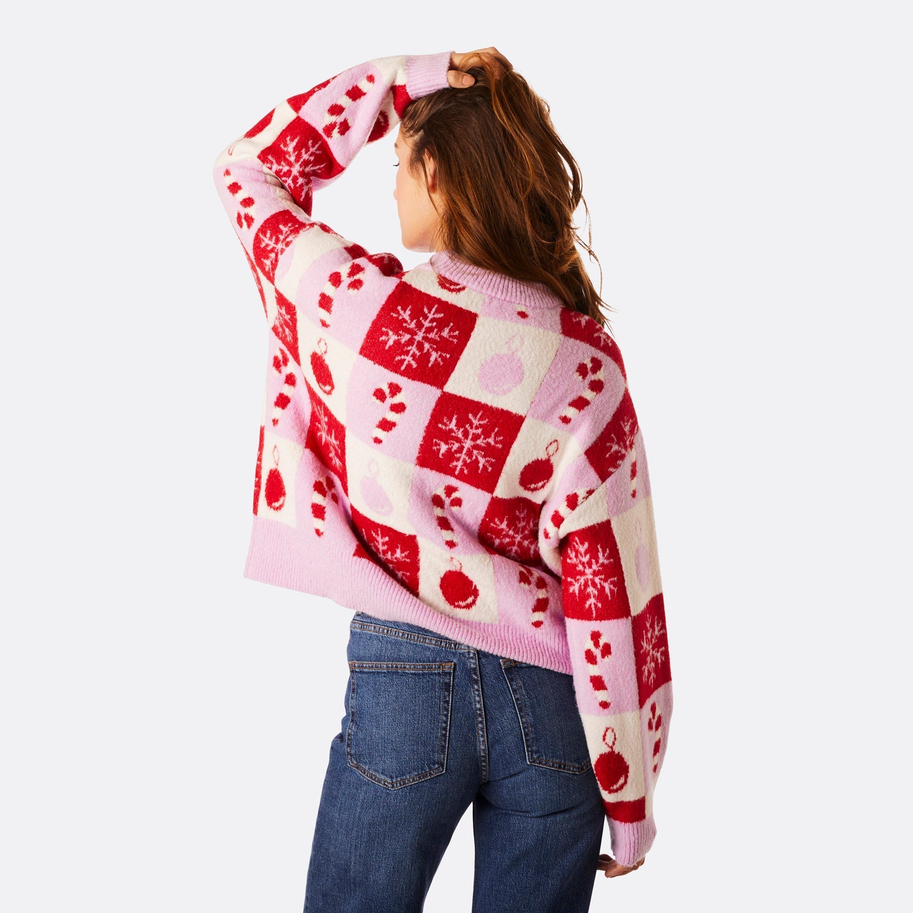 Pull de Noël oversize à carreaux pour femme