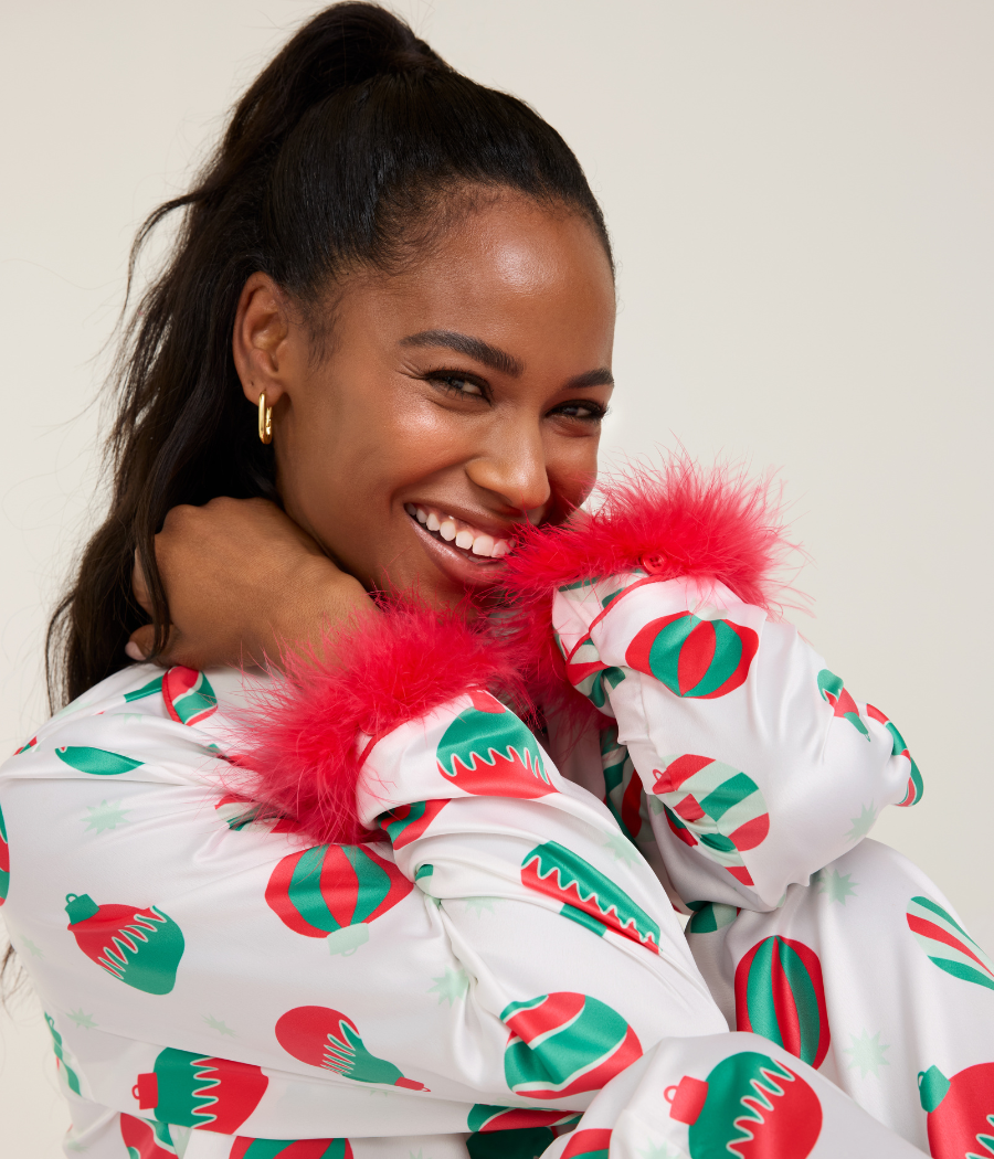 Women's Elegant Ornaments Satin Feather Pajama Set
